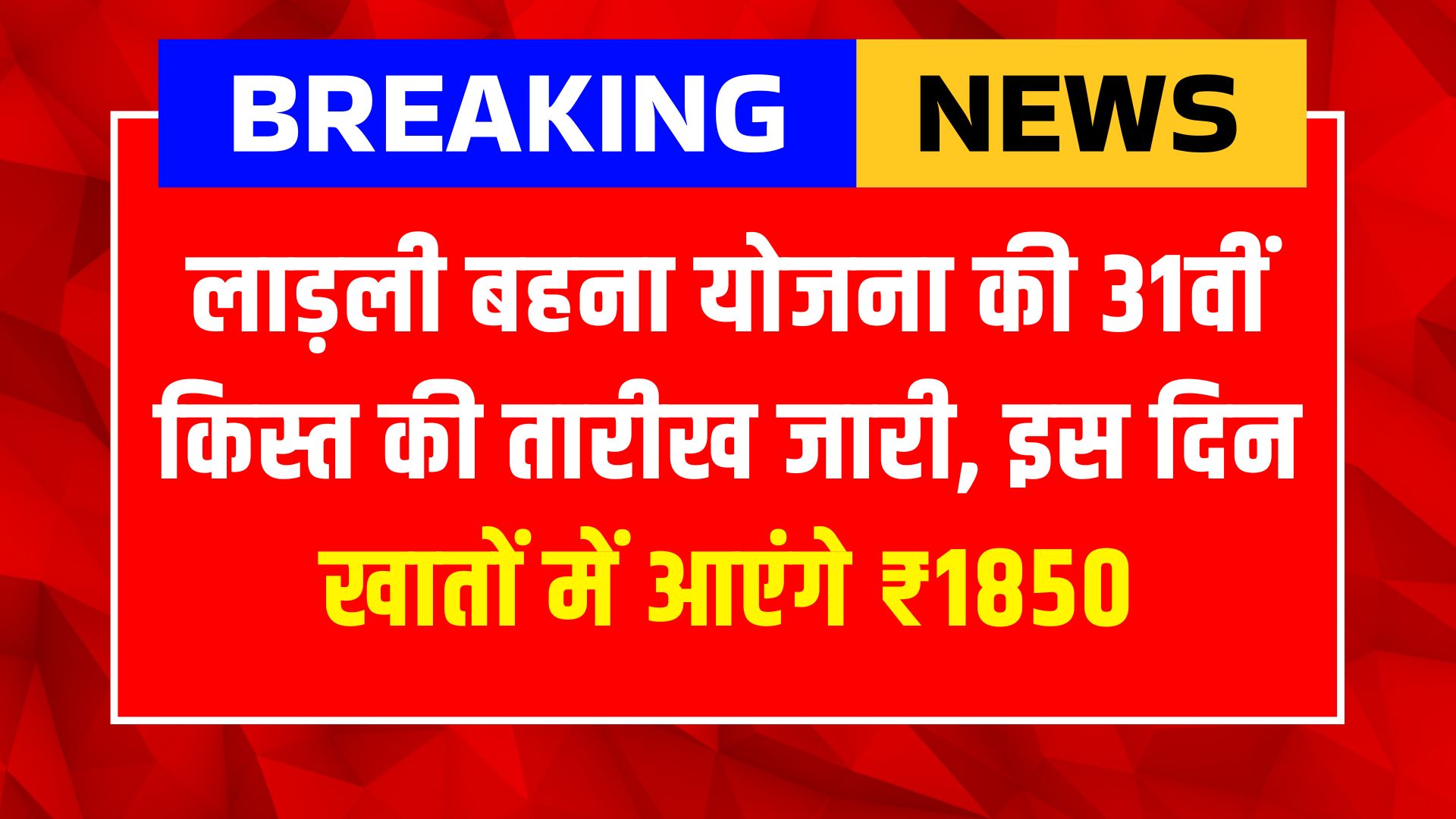 लाड़ली बहना योजना की 31वीं किस्त की तारीख जारी, इस दिन खातों में आएंगे ₹1850 | Ladli Behna Yojana 31st Installment Date