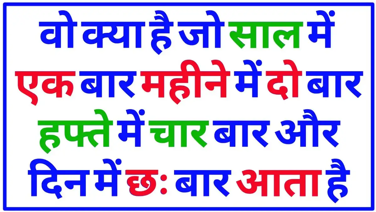 वो क्या है जो साल में एक बार, महीने में दो बार, हफ्ते में चार बार और दिन में 6 बार आता है? : Paheliyan In Hindi
