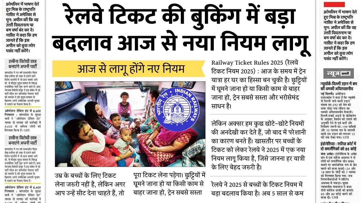 आज से रेलवे टिकट की बुकिंग में बड़ा बदलाव नया नियम आज से लागू हुआ – Ticket Booking New Rules