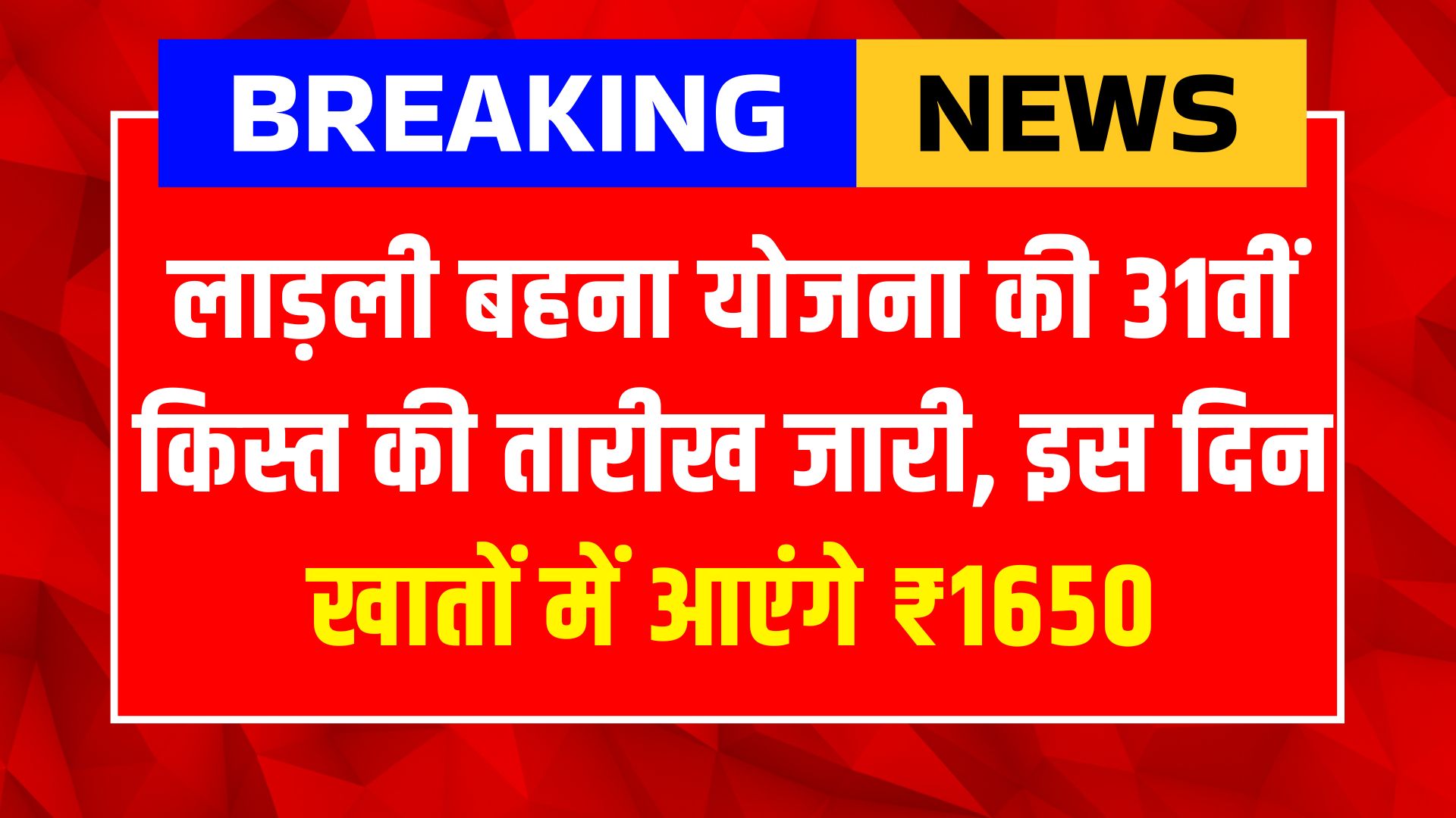 लाड़ली बहना योजना की 31वीं किस्त की तारीख जारी, इस दिन खातों में आएंगे ₹1850 | Ladli Behna Yojana 31st Installment Date